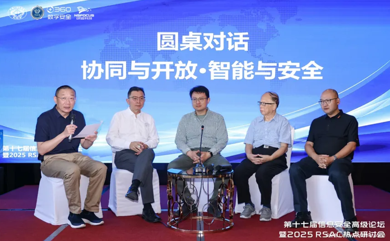 论坛上,绿盟科技集团首席创新官刘文懋、北京大学软件与微电子学院教授翟起滨、北京赛博英杰科技有限公司创始人谭晓生、北京山石网科信息技术有限公司高级副总裁杨庆华,围绕《RSAC 2025之观察》《谈谈今年的RSAC为什么很重要?》《RSAC 2025见闻与思考》《拥抱技术创新,坚守安全初心——RSAC 2025感悟》等主题,分享了他们在大会期间的观察与理解,就网络安全领域的前沿技术、发展趋势以及行业挑战进行了深入探讨。