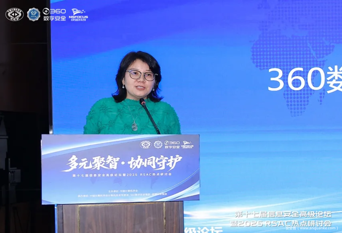 360数字安全集团副总裁李娜为论坛致辞。李娜总指出,当前网络安全产业面临双重发展机遇,东南亚、中东等新兴市场的崛起为行业打开了出海新空间,同时,以大模型为代表的前沿技术正加速推动安全产品形态的系统性重塑。李娜总强调,网络安全技术应服务于业务场景,要以AI能力为支撑,构建应对涉网犯罪升级的立体化防御体系,在网络攻击溯源、反间谍安全防护、反诈技术协同等领域强化技术与业务的深度耦合。