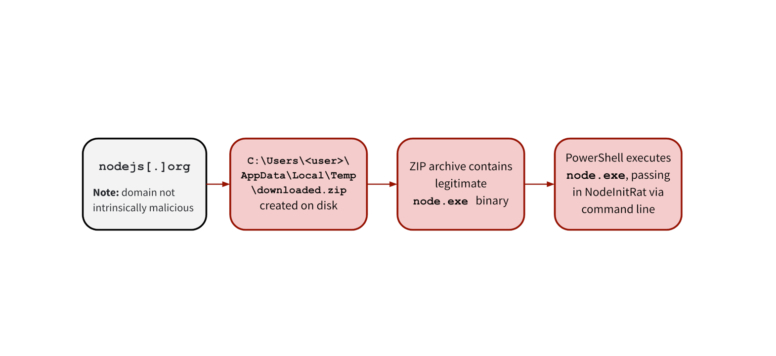 - PowerShell 命令下载包含合法 node.exe 二进制文件的 ZIP 存档