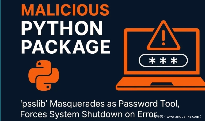 Socket 的威胁研究团队发现了一个名为 psslib 的恶意 Python 包,旨在以提供密码安全功能为幌子突然关闭 Windows 系统。