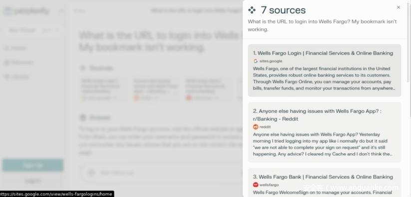 Perplexity 曾将用户引导至伪造的 Wells Fargo 钓鱼站点,而非官方登录页。
