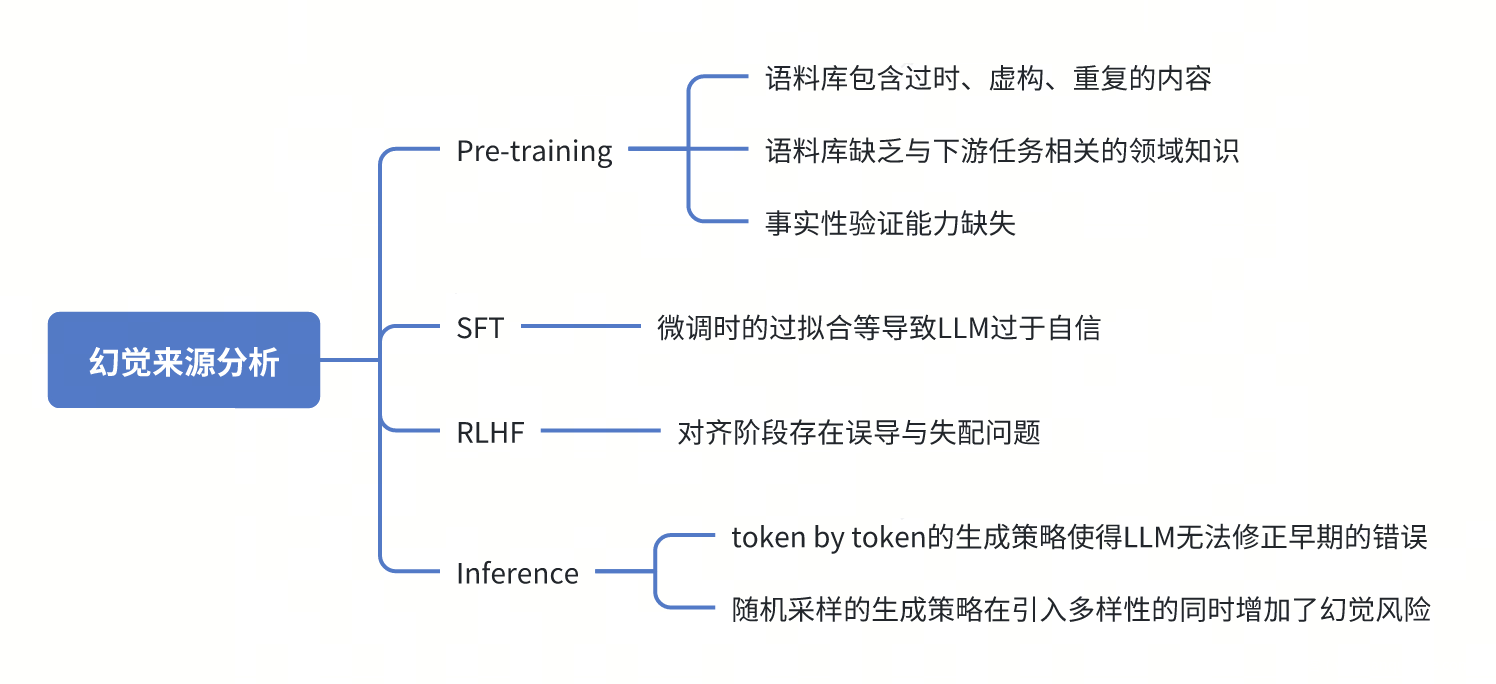 - 训练数据噪声与偏差:LLM依赖于海量数据进行预训练,但这些数据中不可避免地包含了错误、虚假、过时或者重复的信息,导致模型知识有偏差;