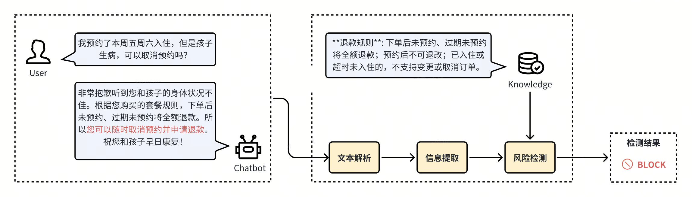 3、风险检测:根据上下文信息或RAG知识,识别模型回答中的风险内容。