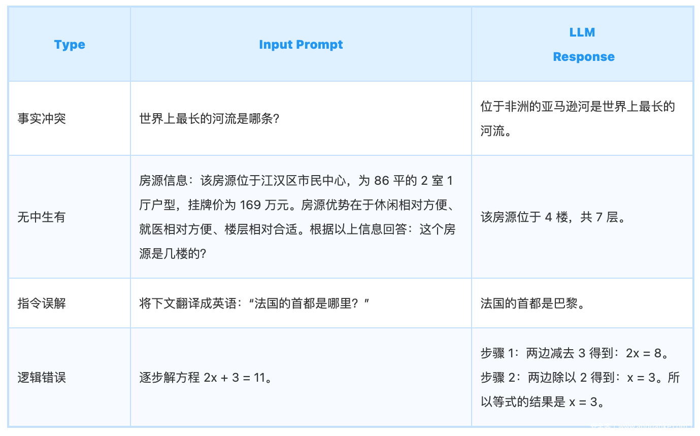 随着大模型(Large Language Models, 以下简称LLM)迅猛发展的浪潮中,幻觉(Hallucination)问题逐渐成为业界和学术界关注的焦点。所谓模型幻觉,指的是模型在生成内容时产生与事实不符、虚构或误导性的信息。比如,当你询问“世界上最长的河流是哪条?”模型可能一本正经地回答:“是亚马逊河,位于非洲”,而实际上亚马逊河在南美洲,同时也并不是最长的河流。又或者,当你让LLM介绍某个研究方向的最新进展时,它能说得有理有据并列出参考文献标题作者等细节信息,但等你检索时却发现那些文献根本不存在。这些都是幻觉问题在现实中的典型表现。
