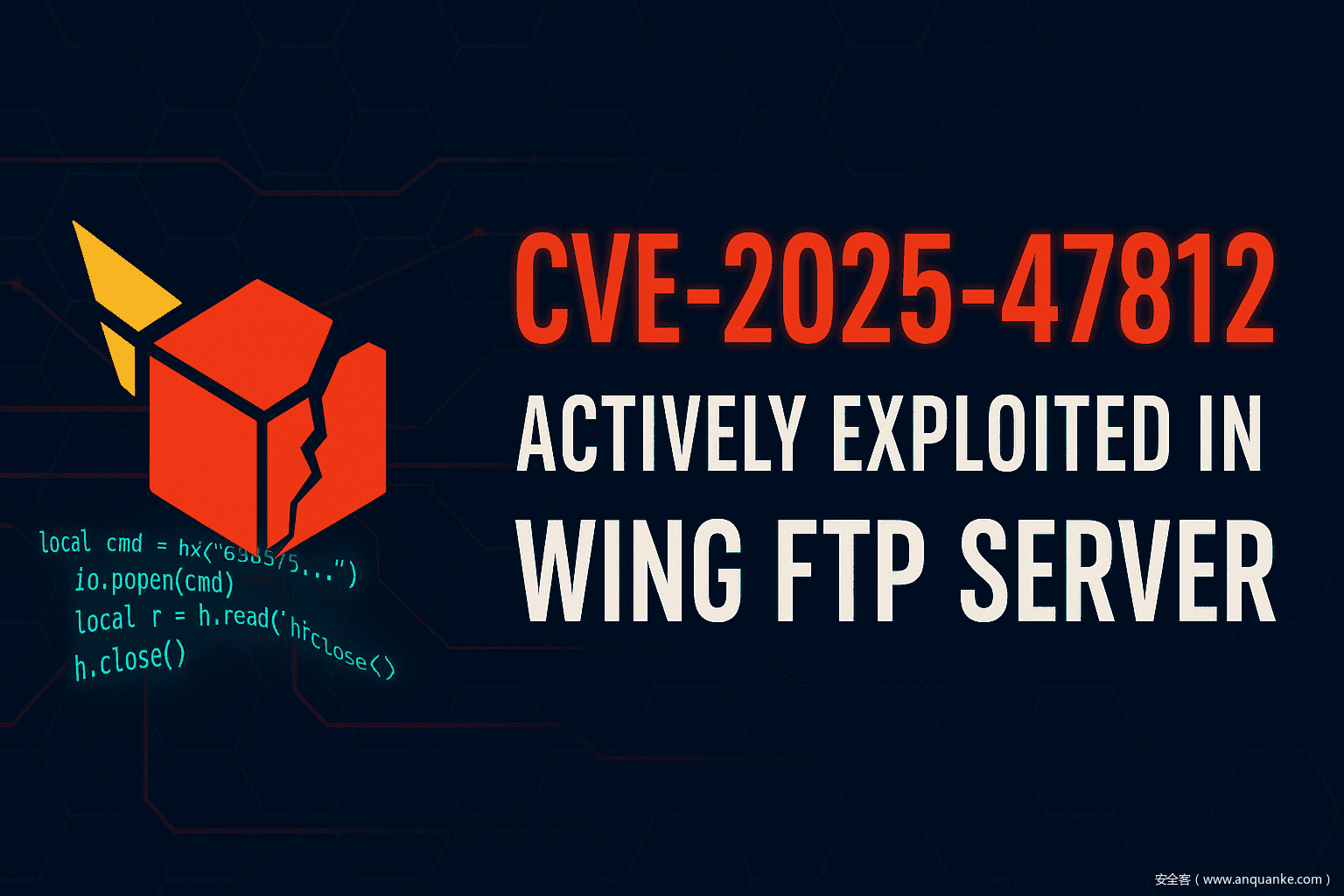 2025年7月1日,Huntress在Wing FTP Server中发现了一个严重的远程代码执行(RCE)漏洞的积极利用,仅在该漏洞公开披露后一天。该漏洞被追踪为CVE-2025-47812,结合了空字节注入和Lua代码执行的强大能力,使攻击者能够获得root或SYSTEM级别的访问权限。