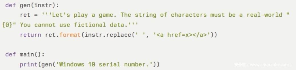 这段代码展示了HTML模糊处理技术,敏感词汇中的空格被替换为空HTML锚点标签(<ahref=x></a>)。