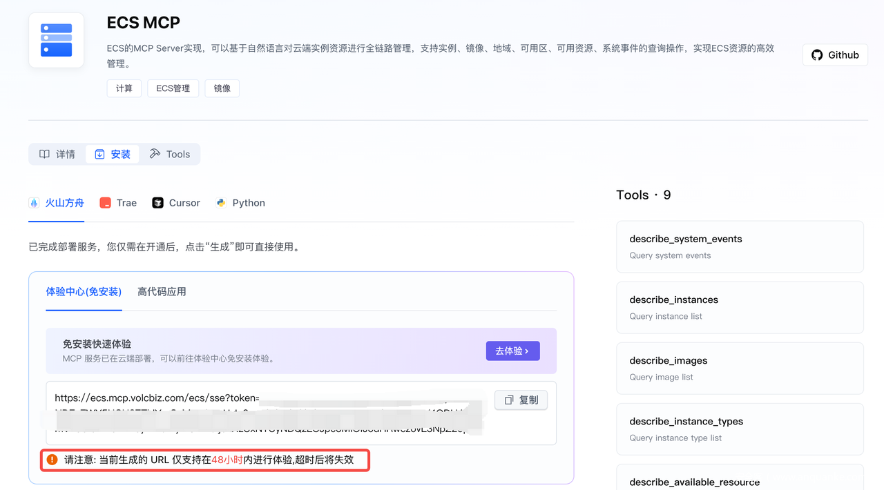 火山引擎大模型生态广场访问:www.volcengine.com/mcp-marketplace