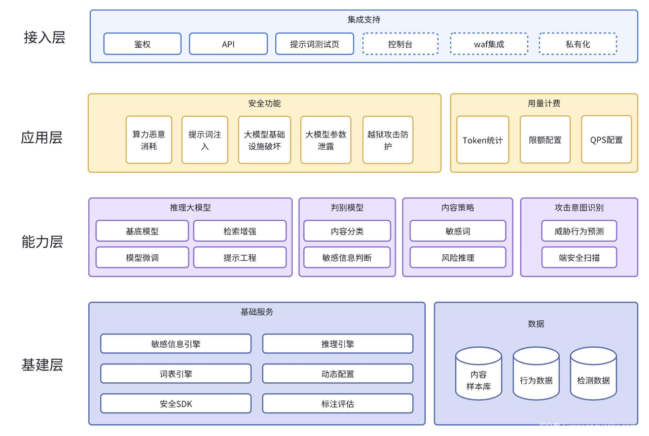 - · 模型安全:我们集成了自研的大模型防火墙,能够有效防御提示词注入、敏感信息泄露等针对LLM的攻击。