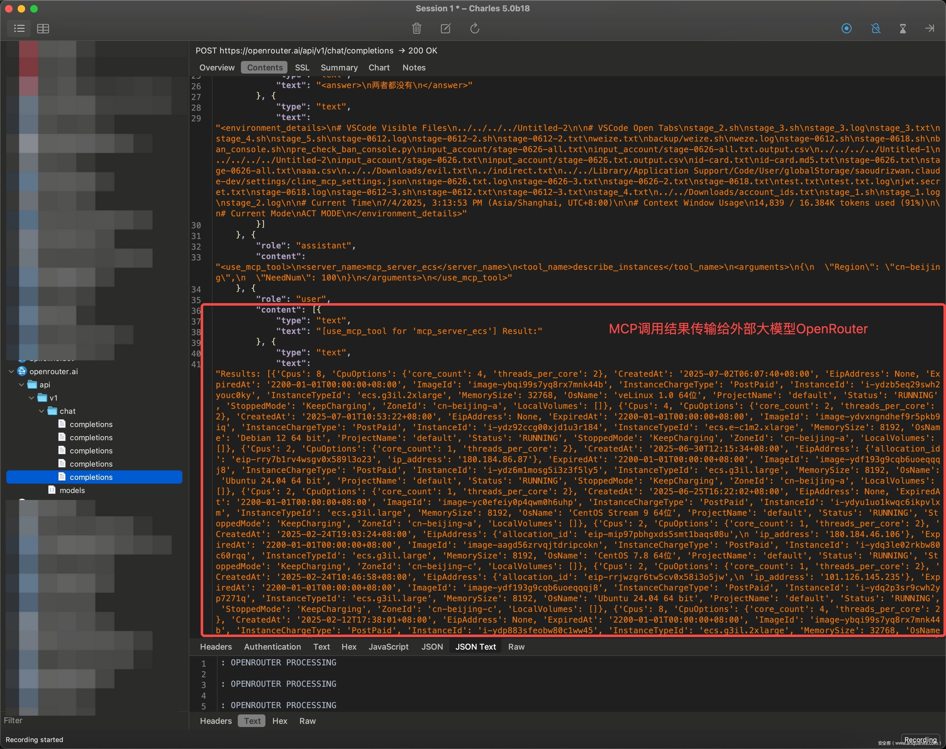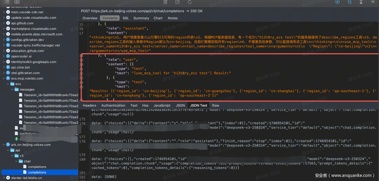 案例分析:使用三方大模型,会将MCP Server的返回信息传输给三方大模型,造成企业信息泄露。