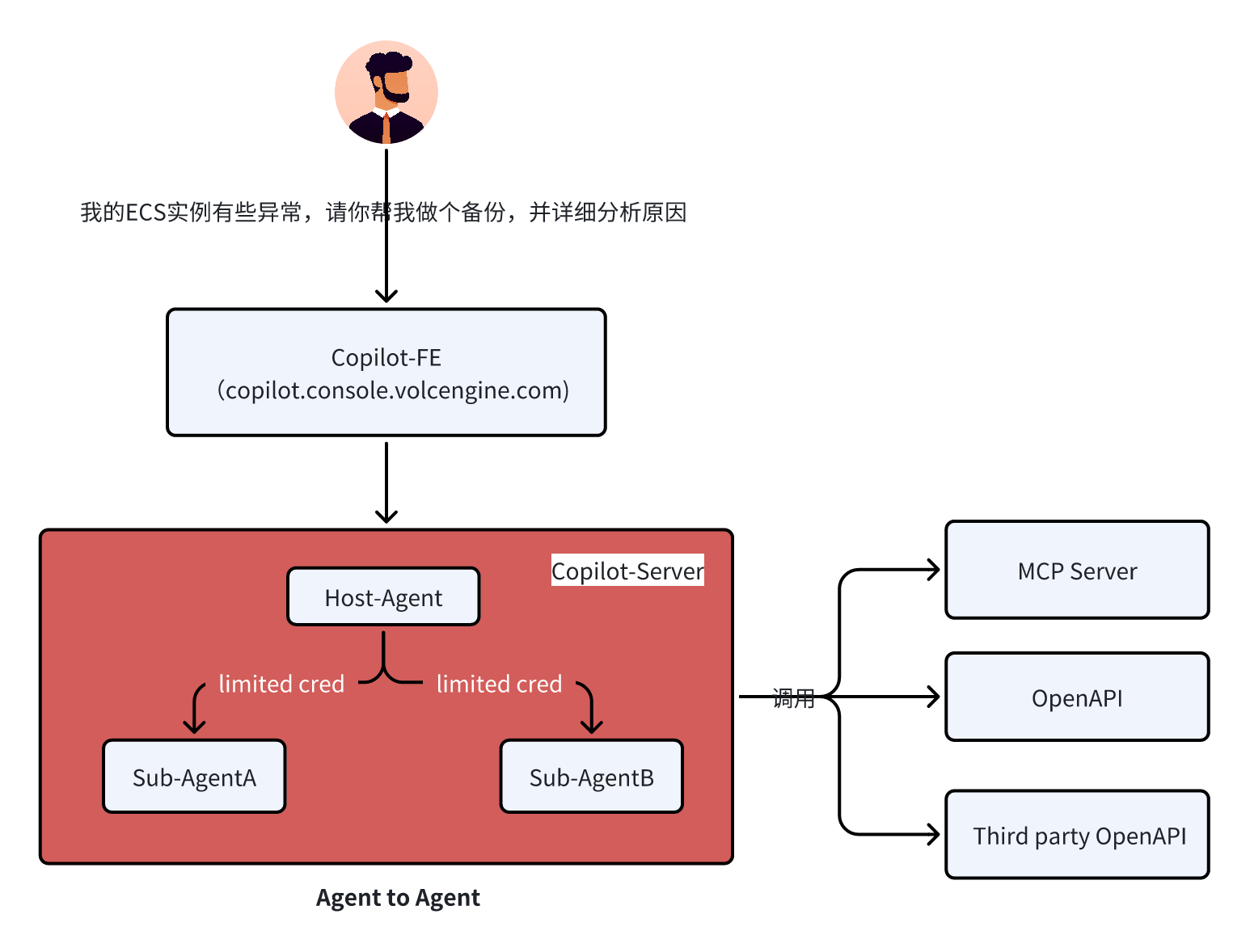 - · 租户隔离:MCP网关负责将OAuth Token兑换为火山引擎的临时身份凭证(STS Token),实现严格的租户身份与权限的隔离。
