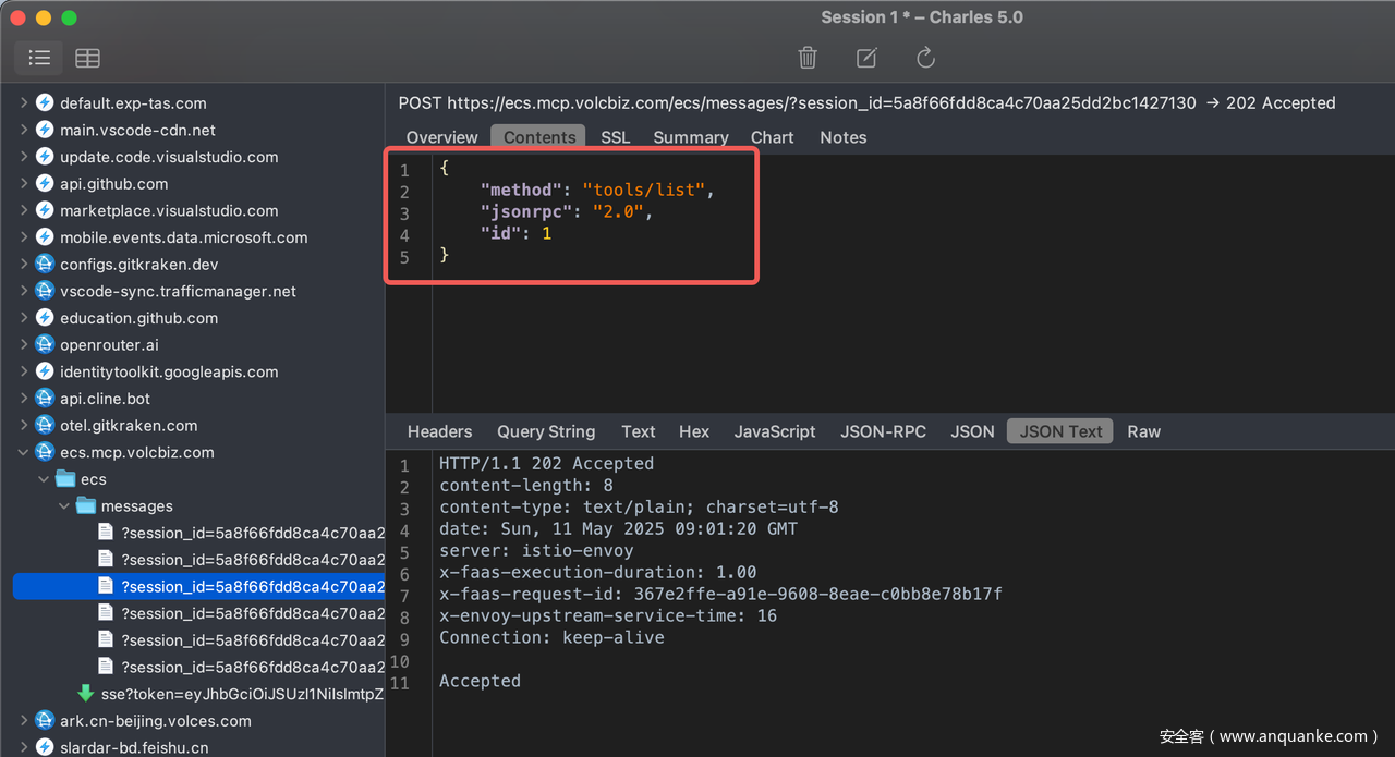 本节以火山引擎ECS服务的MCP Server与Client交互为例,对协议的全流程进行分析。