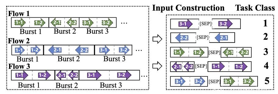 然而,统计流量特征、原始流量序列与原始数据包字节等现有流量表征形式差异大,需要分别建立针对性的模态表征模型与预训练任务,如: