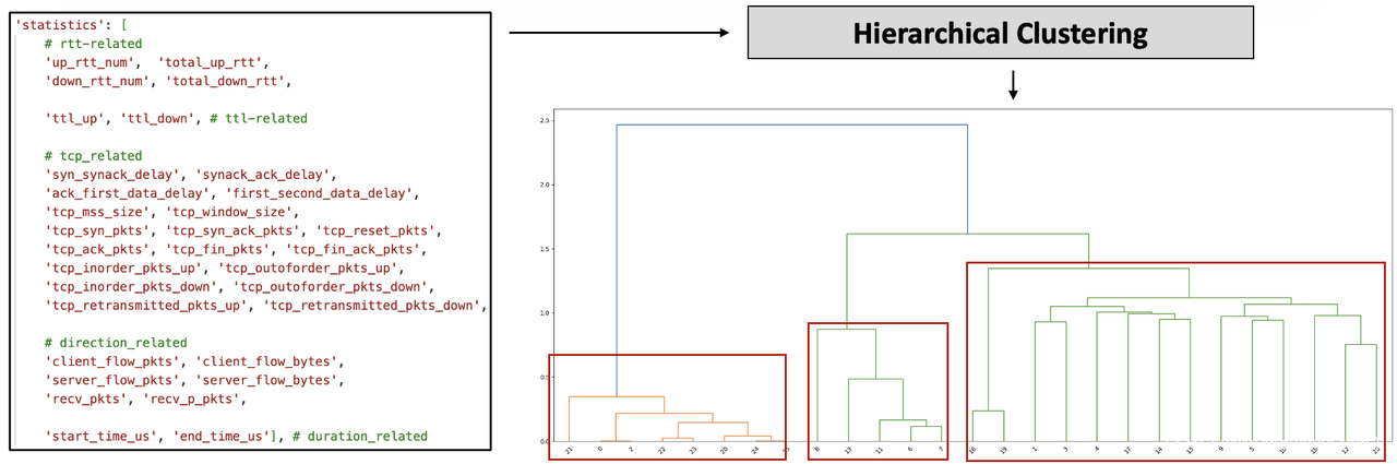 - · 输入数据:流量会话中数据包时序、数量等信息相关的统计特征,例如