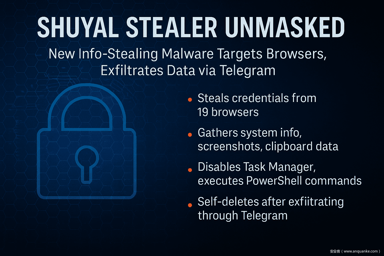 在一次深入的技术调查中,Hybrid Analysis揭露了一种强大的新型信息窃取者——SHUYAL,这是一个之前未曾记录过的恶意软件家族,结合了广泛的凭证收集、系统侦察和隐蔽的外泄行为。