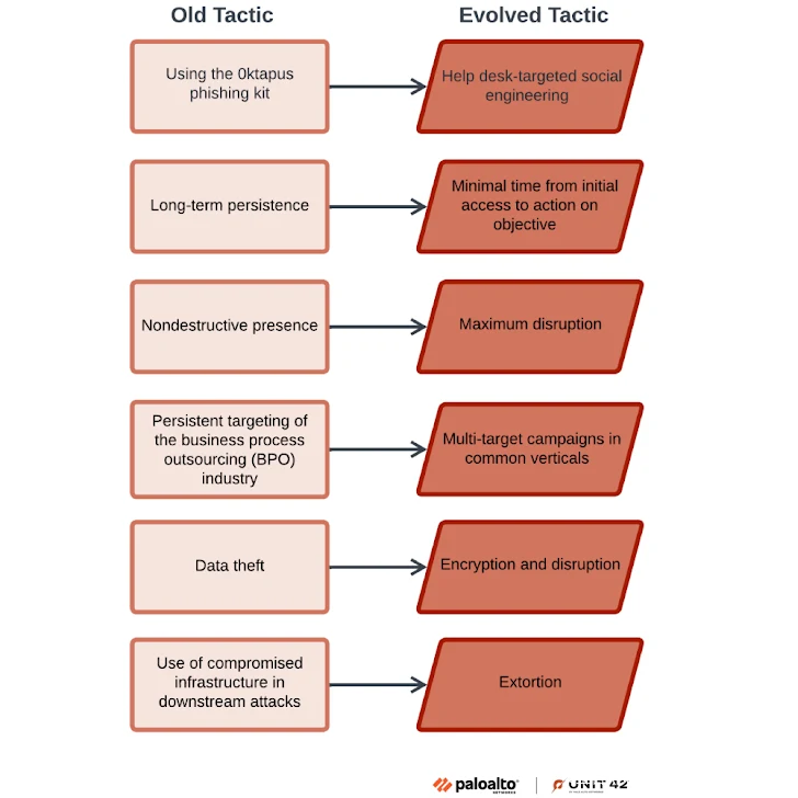 谷歌的Mandiant团队在一份详细分析报告中指出:“该组织的核心战术一直保持一致,且不依赖于软件漏洞。相反,他们使用一种经过验证的战术,主要通过拨打IT帮助台电话进行社会工程攻击。”