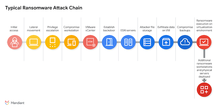 谷歌表示,这种方法通过绕过安全工具并留下极少的妥协痕迹,提供了一条直接从虚拟化主机(hypervisor)进行数据外泄和勒索病毒部署的路径,”极为有效”。