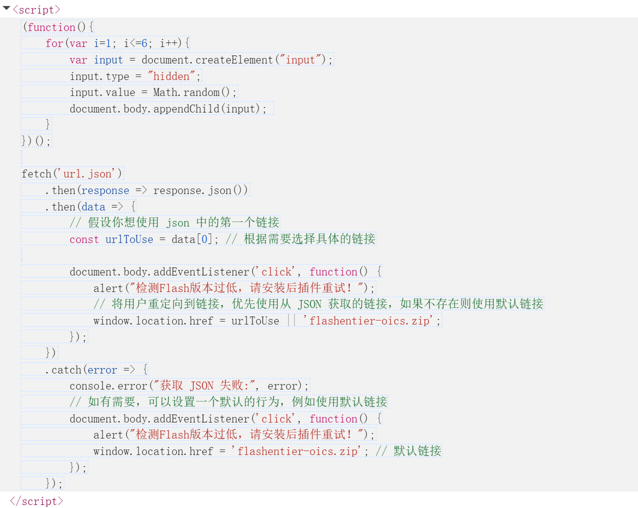 从网页源码中发现了攻击者嵌入的重定向脚本: