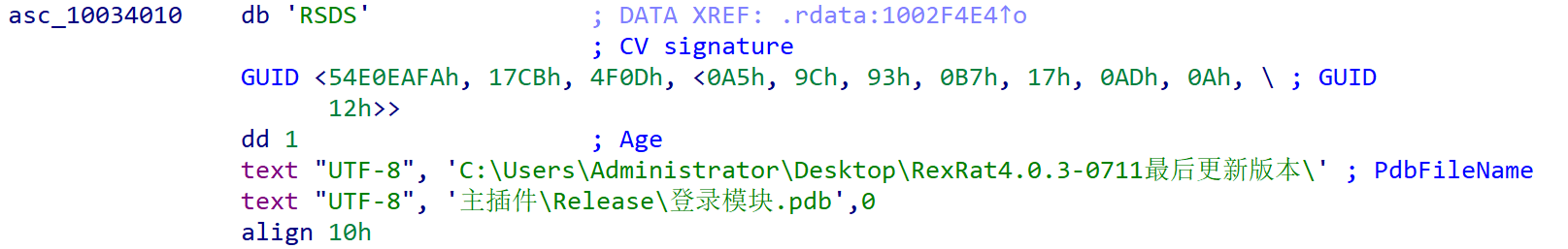 最终加载PE的pdb中包含“RexRat4.0.3”字符,实际核心为winos。