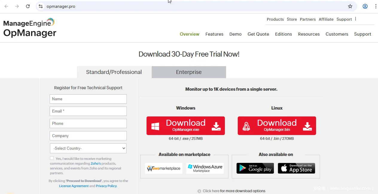 例如,攻击者通过搜索引擎优化(SEO)投毒,诱导用户在 Bing 上搜索 “ManageEngine OpManager” 时跳转至钓鱼站点 opmanager[.]pro,从而实施攻击。