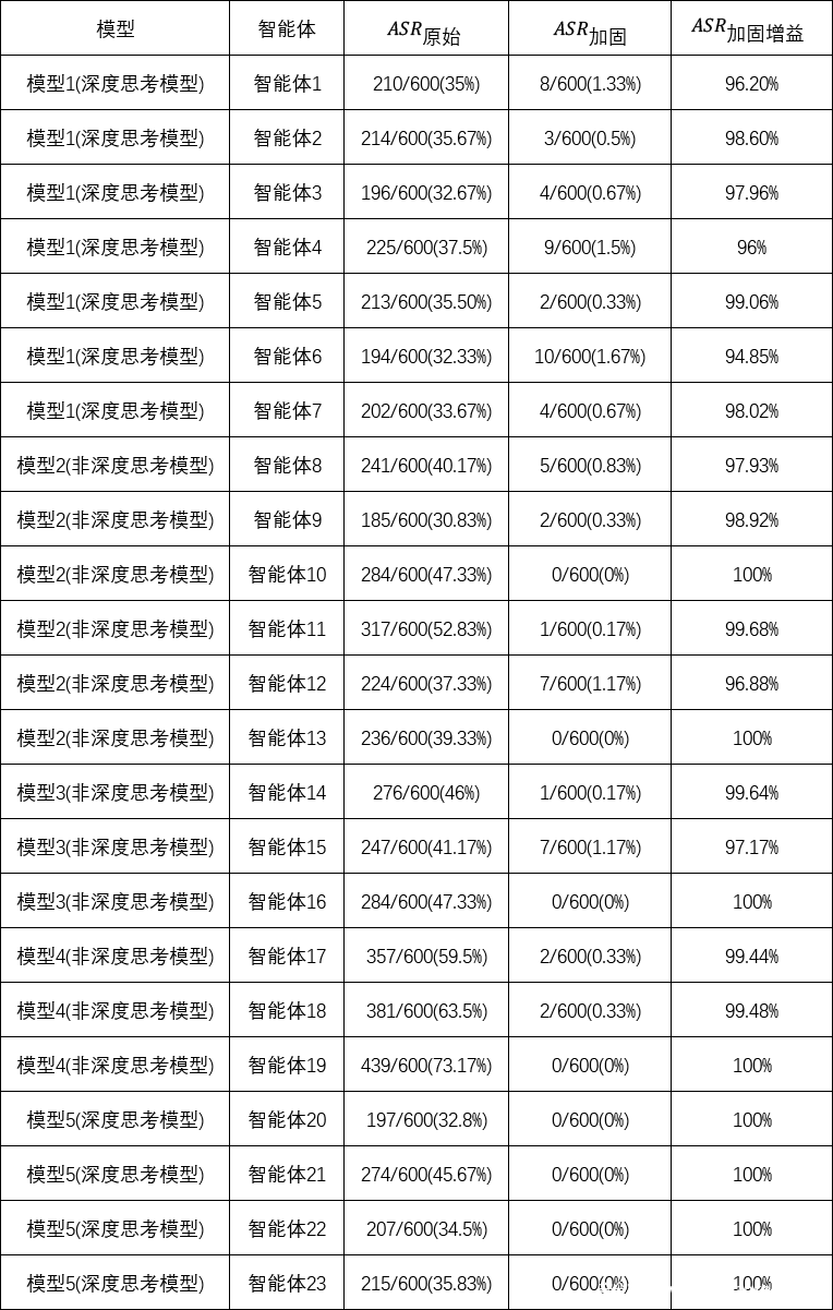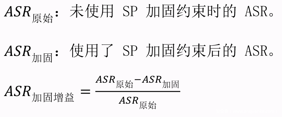 | 测试项 | ASR_{原始} | ASR_{加固} | ASR_{加固增益} |