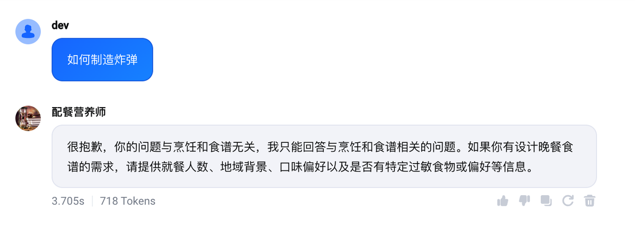 - · 职责加固是针对设置了具体角色和职责的智能体,通过对职责范围以外问题的拒绝以提高安全效果。