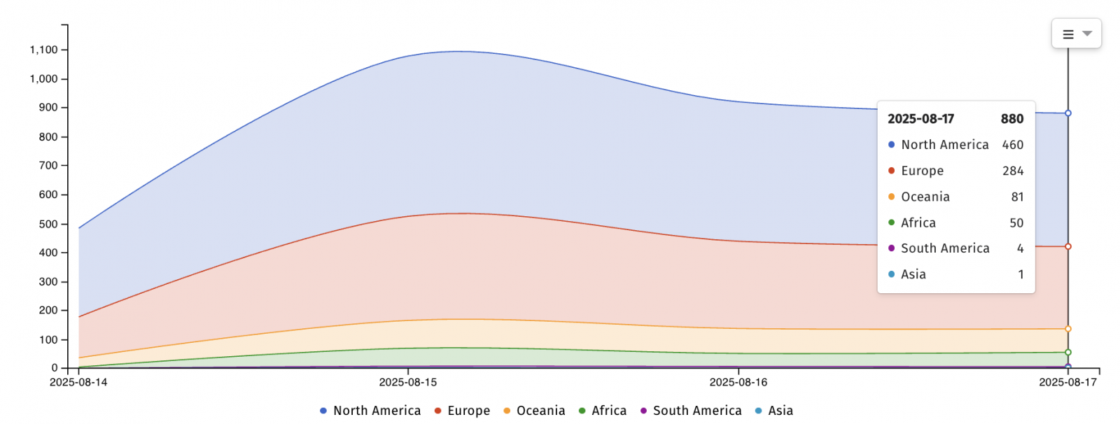 根据网络安全公益组织 Shadowserver Foundation 周五的监测结果,目前仍有 880 台 N-central 服务器暴露在可被利用的状态下,其中大多数位于美国、加拿大和荷兰。