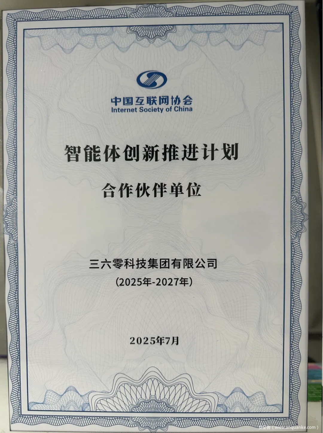 “智能体创新推进计划”由中国互联网协会作为主要发起单位,360凭借在人工智能和安全领域的深厚积累,成为首批加入该计划的24家核心合作伙伴之一,共同助力智能体产业生态建设。