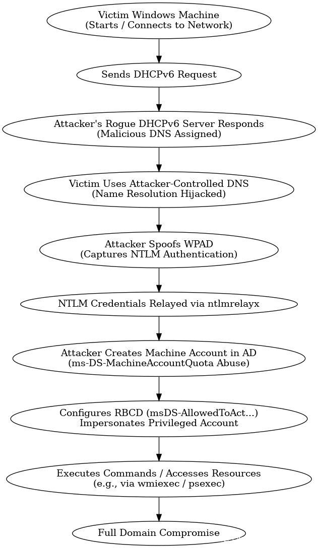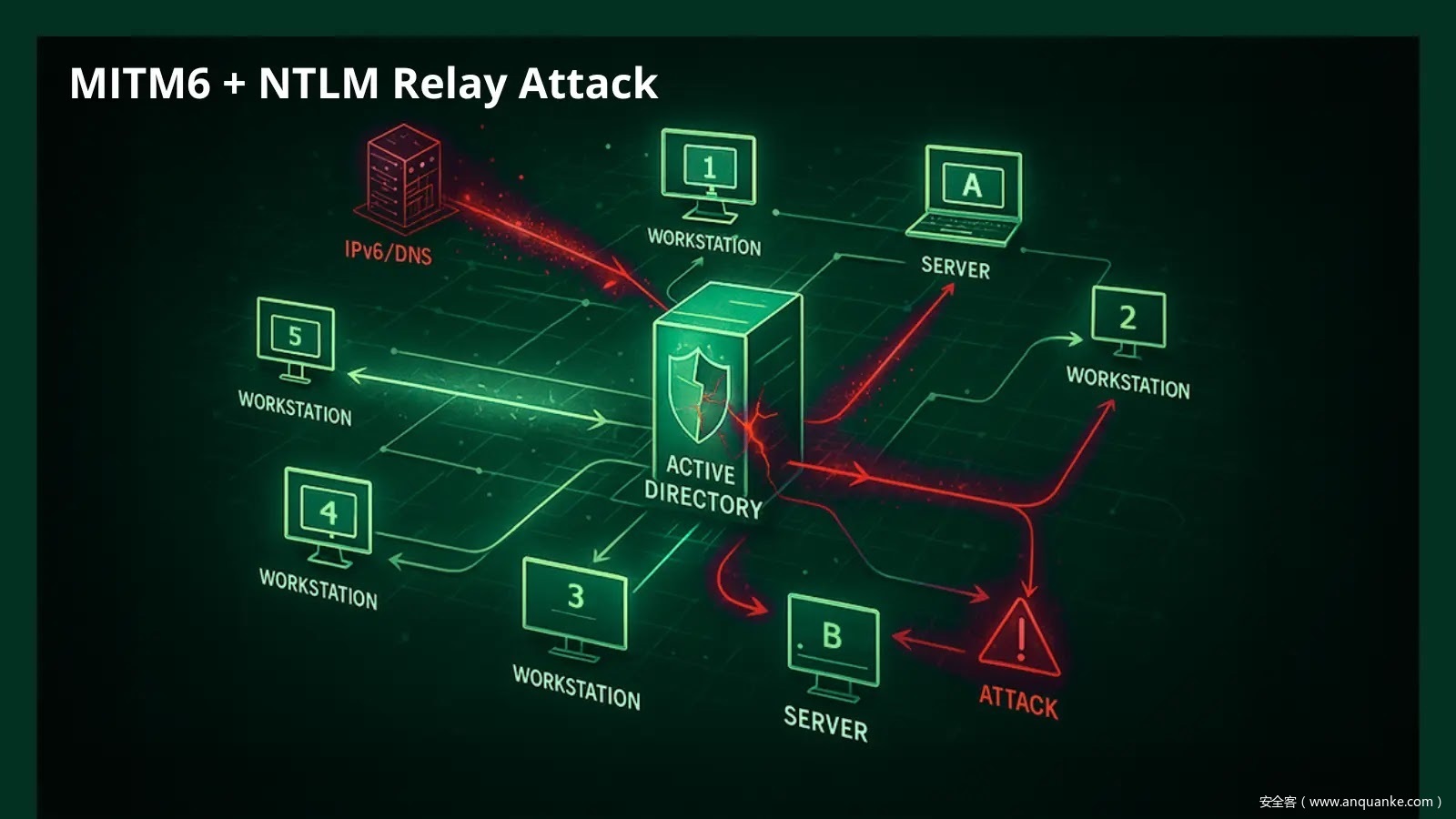 一种结合MITM6与NTLM中继技术的精密攻击链近日被披露,可导致Active Directory域环境全面沦陷。该攻击利用Windows默认的IPv6自动配置行为,使攻击者能在数分钟内从网络访问权限提升至域管理员权限。