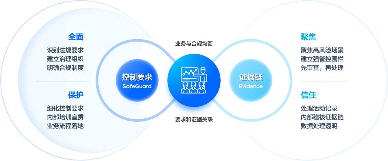 除了协助广汽设计了全新的合规架构和 Top-Down 的治理体系,火山引擎帮助广汽集团构建了完善的治理组织、管理规范和合规工作流,明确合规的“控制要求”,还进一步通过 Bottom-up 的技术体系,建立落实“控制要求”的管控围栏和稽核工具,实现默认合规和留存合规“证据链”,向业务团队、法务合规和审计人员提供“一站式”的合规跨境服务。