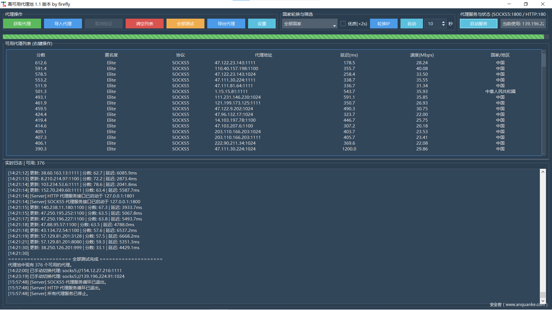 代理获取途径多样化:支持获取在线代理,也可以自己导入代理(上图中的可用代理文件夹里面有作者自己私藏的ip而且还会更新)。什么你说这都满足不了你?作者还自己写了个爬取的脚本,可以自己去爬取。