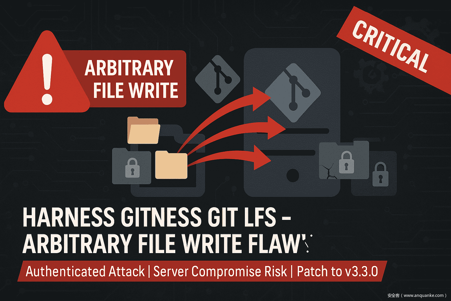 开源 DevOps 生态系统再度遭遇严重安全问题——此次受影响的是 Harness Open Source,该平台集成了代码托管、自动化流水线、Gitspaces 以及制品库等功能。新披露的漏洞被追踪为 CVE-2025-58158,存在于 Harness Gitness Git LFS 服务器中,可被利用实施 任意文件写入攻击。该漏洞的 CVSS 评分为 8.8,对依赖 Git Large File Storage (LFS) 的开发团队构成重大风险。