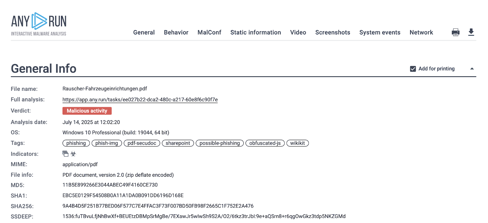 这意味着PDF绝非“单纯的文档”。若缺乏动态分析,凭据窃取、持久化控制或网络连接等恶意行为会在执行前一直隐藏。