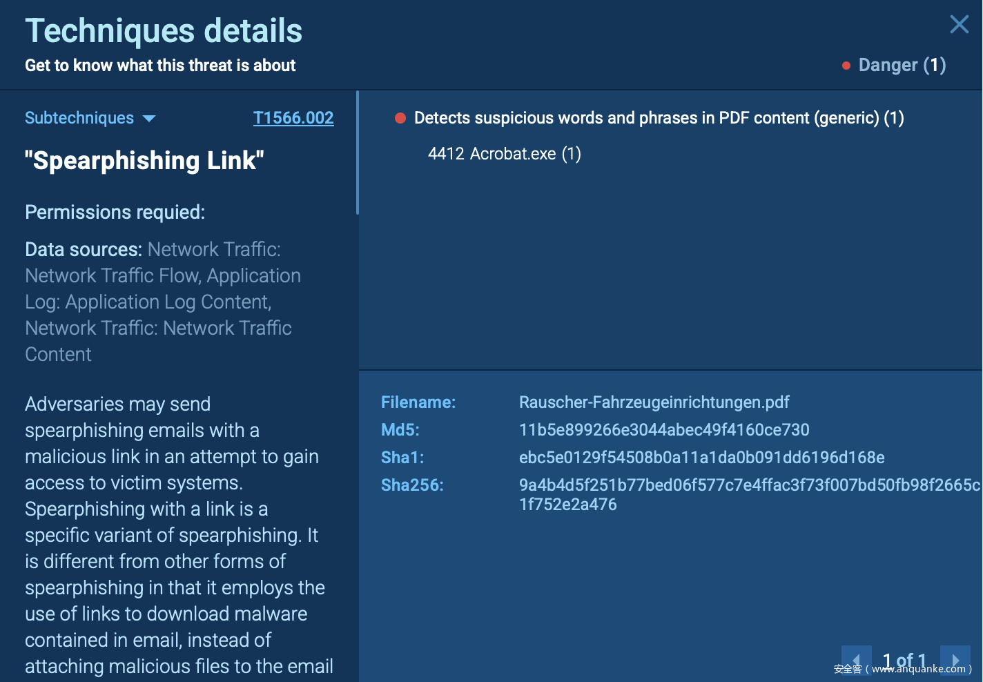其危险性在于极高的迷惑性:PDF 往往能绕过过滤器,在杀毒工具检测中显示“干净”,且在造成损失前不会触发警报。这也是恶意 PDF 成为攻击者最有效的入口点之一,且最难被分析师及早发现的原因。