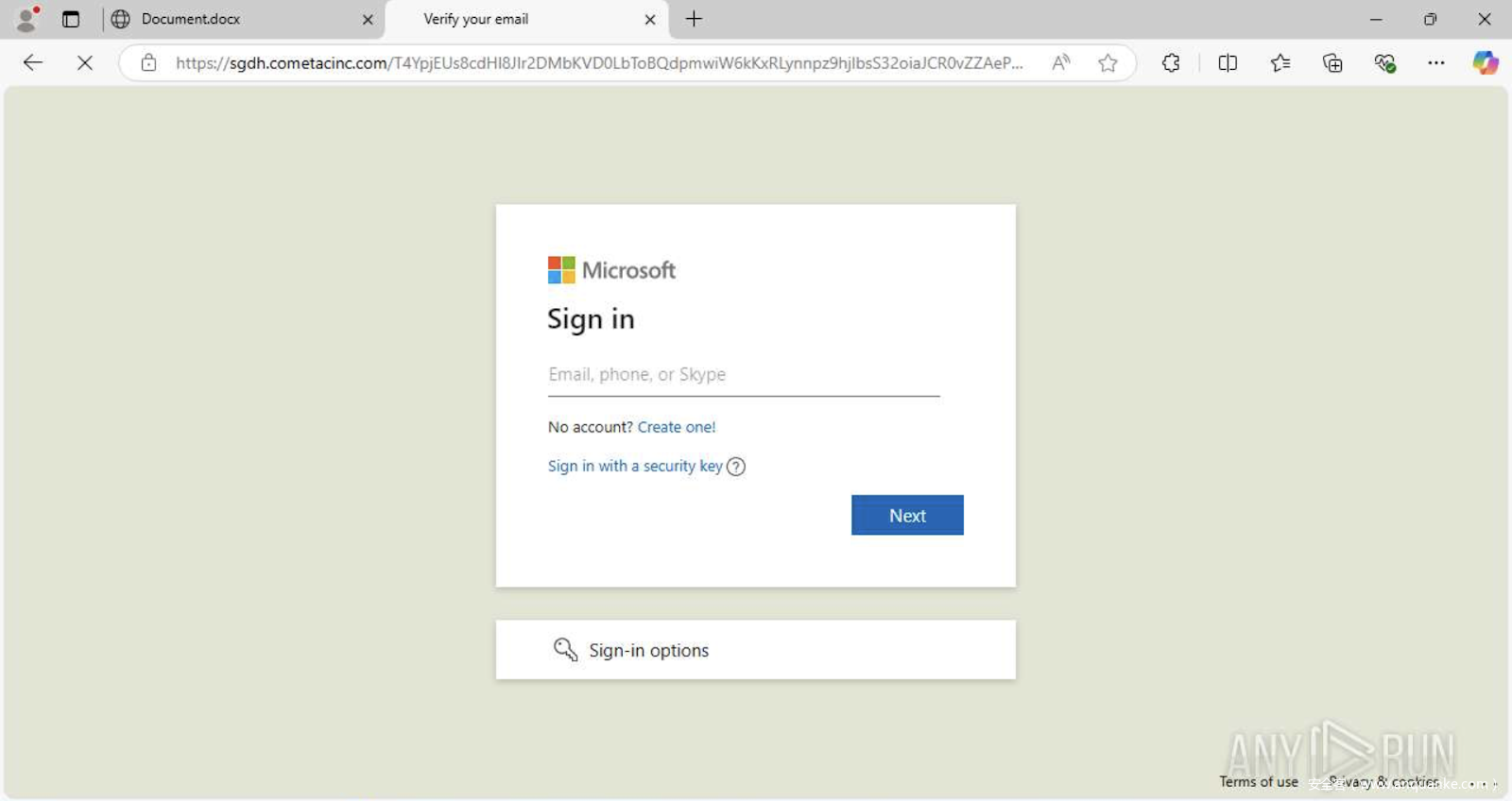 沙箱还显示了用于窃取凭据的伪造微软登录页面,精确还原了受害者会看到的内容。