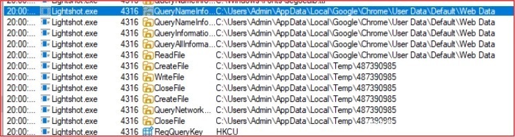 执行后,Salat Stealer会静默注入可信目录,伪装成Lightshot.exe 、Procmon.exe 等合法进程名,以降低被察觉的风险。