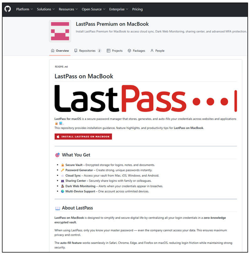 LastPass安全研究人员发现,一场针对macOS用户的大规模恶意软件活动正通过欺诈性GitHub仓库展开。