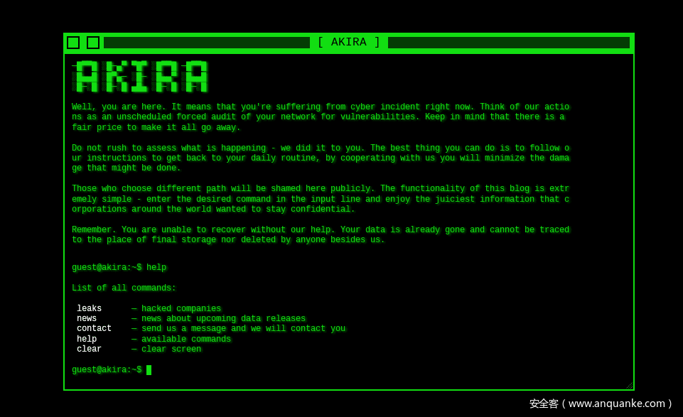 此次活动反映了Akira长期以来对VPN的关注。过去的攻击曾滥用Cisco ASA的CVE-2023-20269和Cisco AnyConnect的CVE-2020-3259等漏洞。