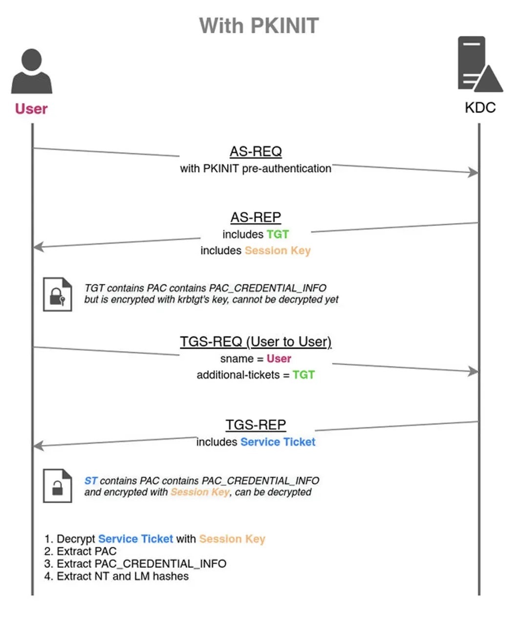 - 该载荷安装一个加载器,注册后门服务,并通过Kerberos PKINIT和UnPAC-the-hash技术窃取管理员凭证,在不触发标准凭证审计日志的情况下提取NTLM哈希。