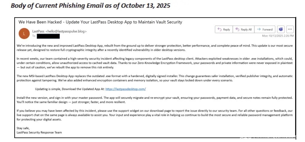 安全专家对新一轮伪装成LastPass漏洞通知的钓鱼邮件发出警告。