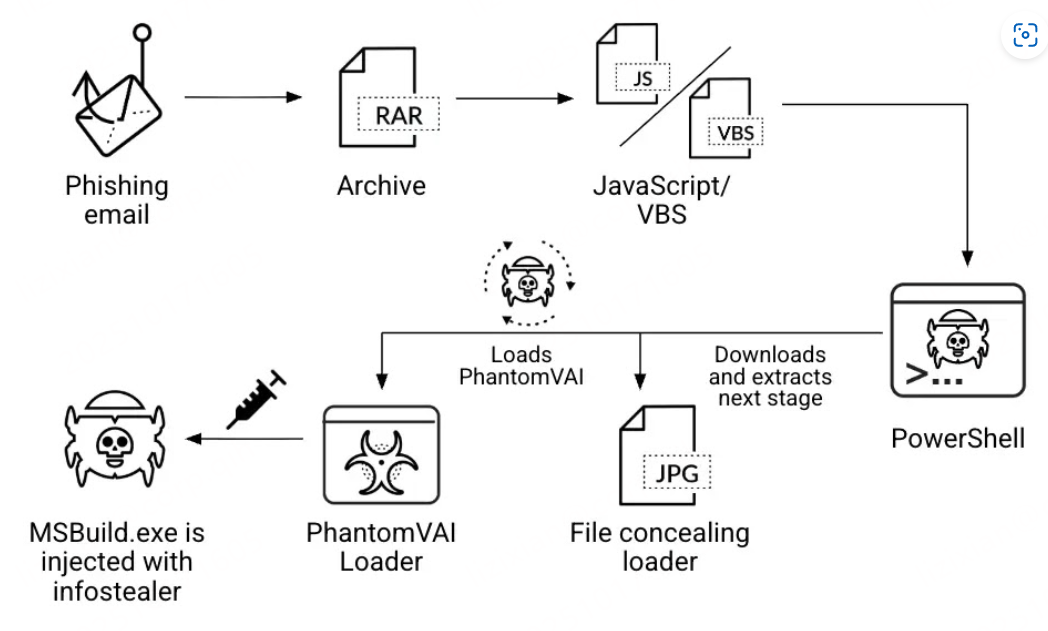 一场高度复杂的多阶段恶意软件活动正针对全球范围的组织发起攻击,借助 PhantomVAI Loader 分发各种强大的信息窃取型恶意程序。攻击链从精心设计的钓鱼邮件入手,已成为制造、教育、医疗、科技、公用事业和政府等多个行业的重大威胁。