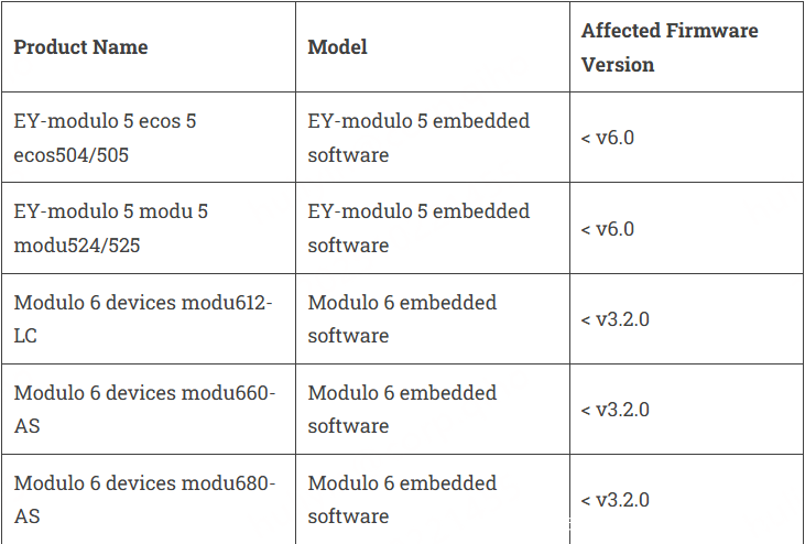 公告警告:“modulo 6设备中的漏洞允许权限提升、远程利用,并破坏设备的完整性、可用性和机密性。”