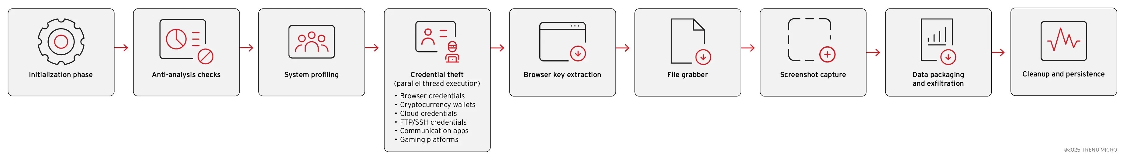 多线程架构是Vidar 2.0最显著的增强之一,允许恶意软件通过多个并行线程执行数据收集任务。