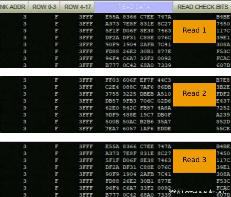 “为验证加密的确定性,我们指示enclave对enclave内存中的固定虚拟地址执行一系列写入和读取操作,并使用逻辑分析仪捕获每一步后的密文读取数据。”他们解释道。