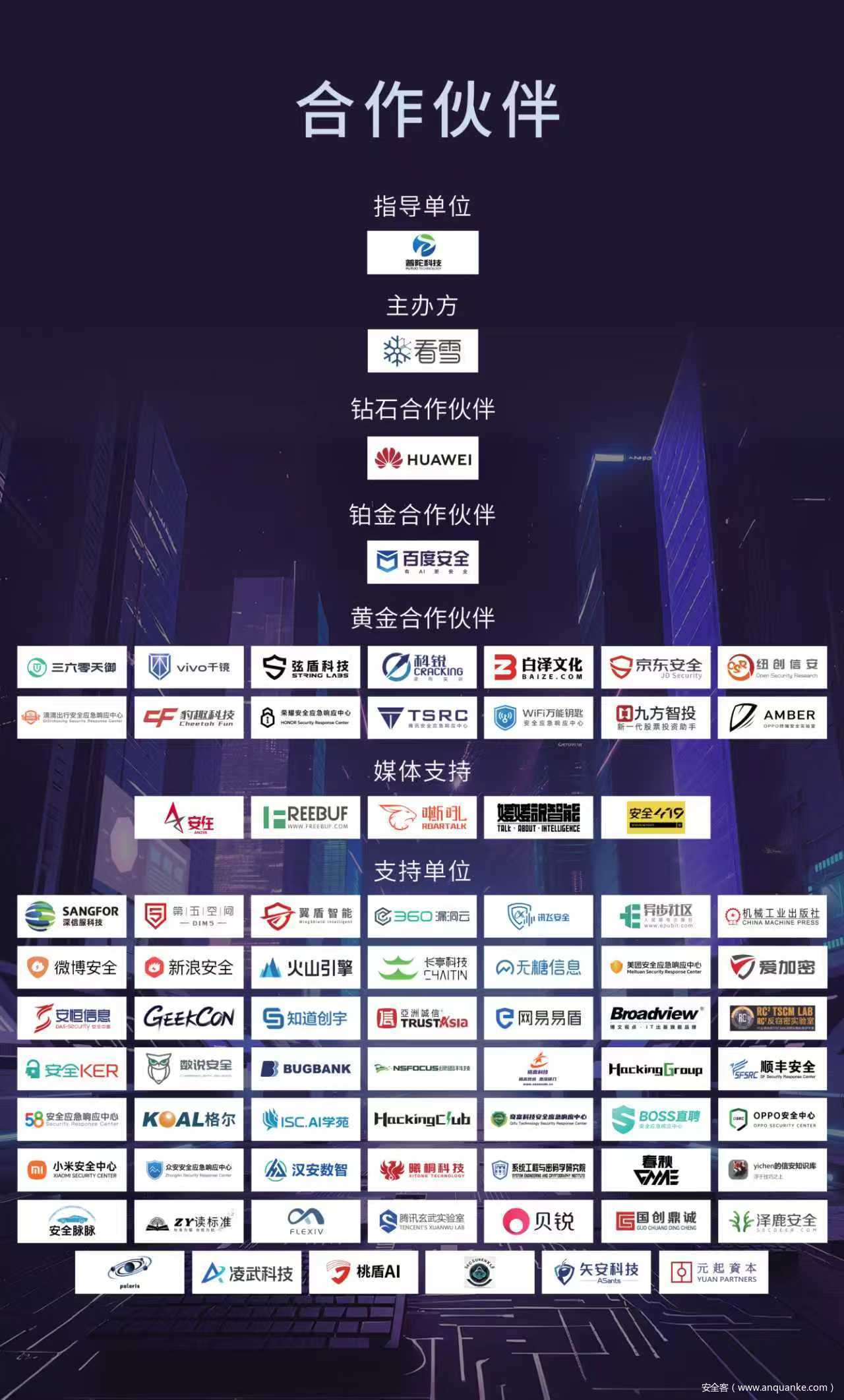 最后,特别感谢指导单位——上海市普陀区科学技术委员会;钻石合作伙伴——华为终端安全;铂金合作伙伴——百度安全;黄金合作伙伴——三六零天御、vivo、弦盾科技、科锐、白泽(绍兴)、京东安全、纽创信安、滴滴出行安全应急响应中心、豹趣科技、荣耀安全应急响应中心、TSRC、WiFi万能钥匙安全应急响应中心、九方智投、OPPO,感谢各位合作伙伴对国内生态建设的推动。