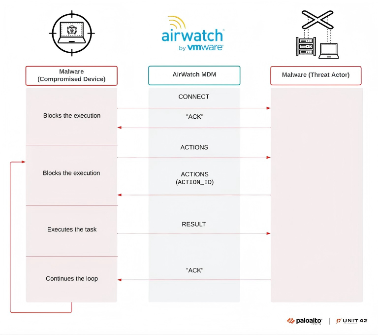 帕洛阿尔托网络(Palo Alto Networks)旗下Unit 42威胁情报团队发现了一个名为Airstalk的复杂新型恶意软件家族,该家族利用VMware AirWatch(现称Workspace ONE)移动设备管理(MDM)API作为隐蔽的命令与控制(C2)通道。