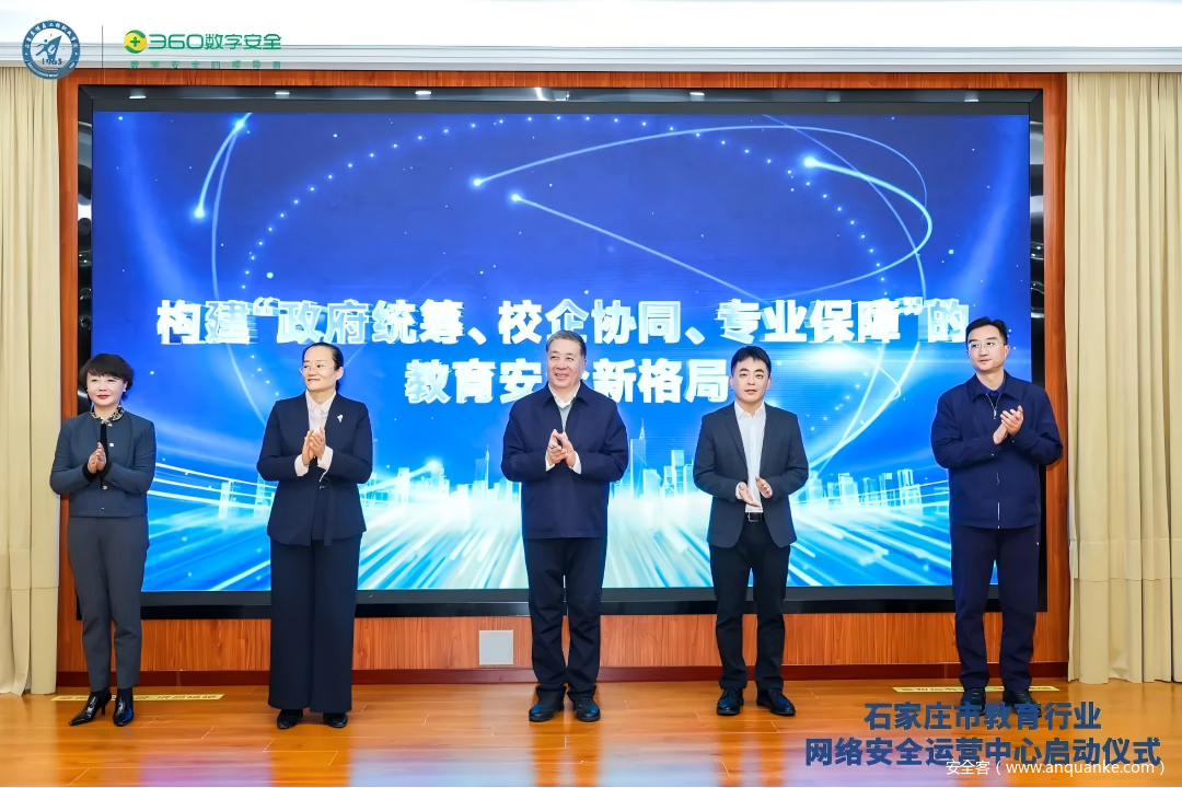 10月30日,由石家庄市教育局牵头,360数字安全集团与石家庄信息工程职业学院联合建设的石家庄市教育行业网络安全运营中心启动仪式,在石家庄信息工程职业学院圆满举办。河北省教育厅学校政治工作处处长赵清云,副处长许立,石家庄市教育工委副书记、教育局党委副书记赵永生,市教育局副局长熊萍,石家庄信息工程职业学院党委书记赵立芬,360数字安全集团副总裁卜思南、360安全云运营中心副总裁张帆等政企校代表共同出席仪式,见证石家庄教育网络安全防护体系迈入智能化、协同化新阶段。