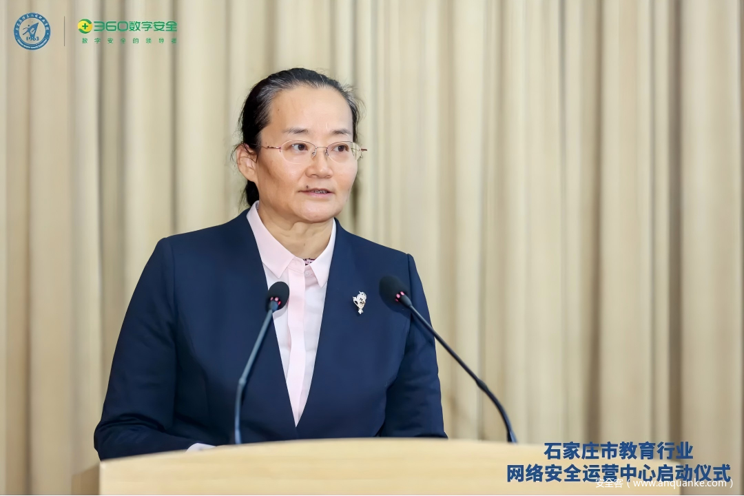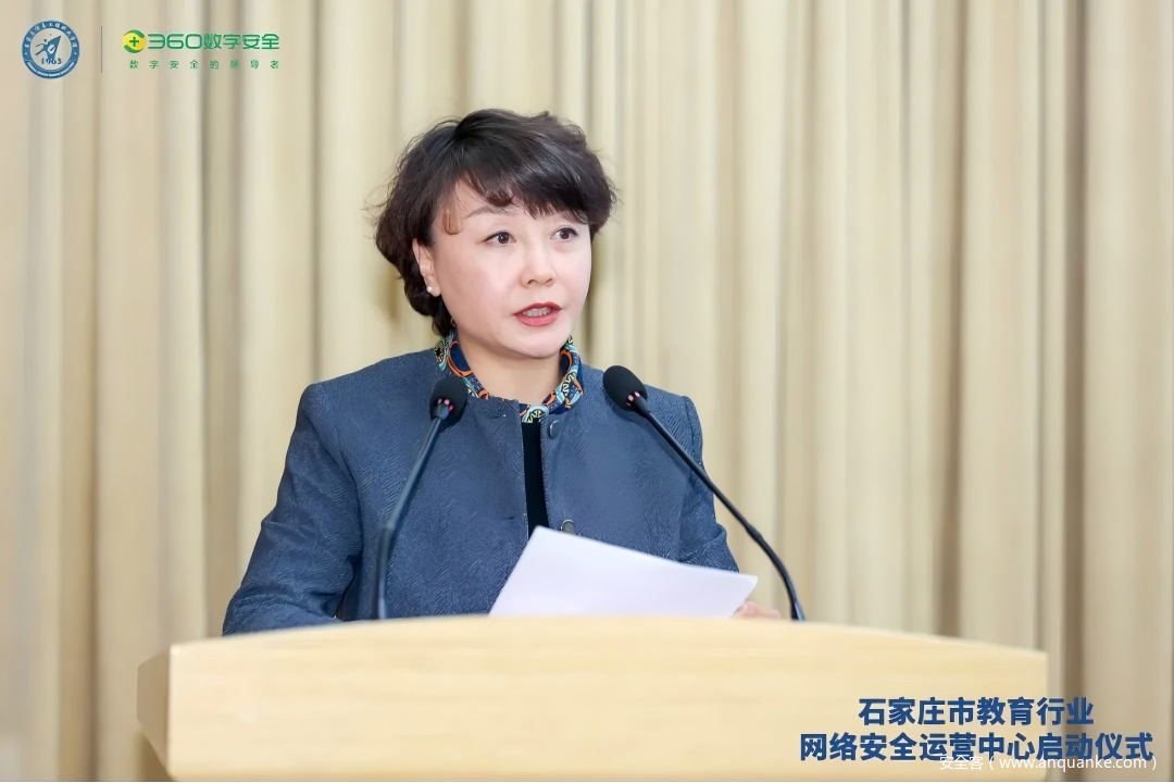 石家庄市教育局副局长熊萍表示,当前数字化已成为推动教育高质量发展的核心引擎,而网络安全作为数字化转型的“生命线”,构建专业化、系统化的防护体系势在必行。她期望在360的技术赋能下,运营中心能全面提升全市教育系统网络安全防护水平,石家庄市教育局也将持续加大政策支持与资源保障力度,推动石家庄教育网络安全工作迈向新台阶。