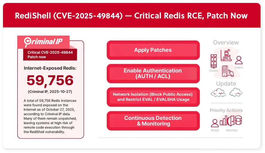 对于运行受影响Redis实例且未采取适当身份验证或网络隔离的组织,面临基础设施完全接管、数据泄露以及部署加密矿工和勒索软件等二次载荷的直接风险。